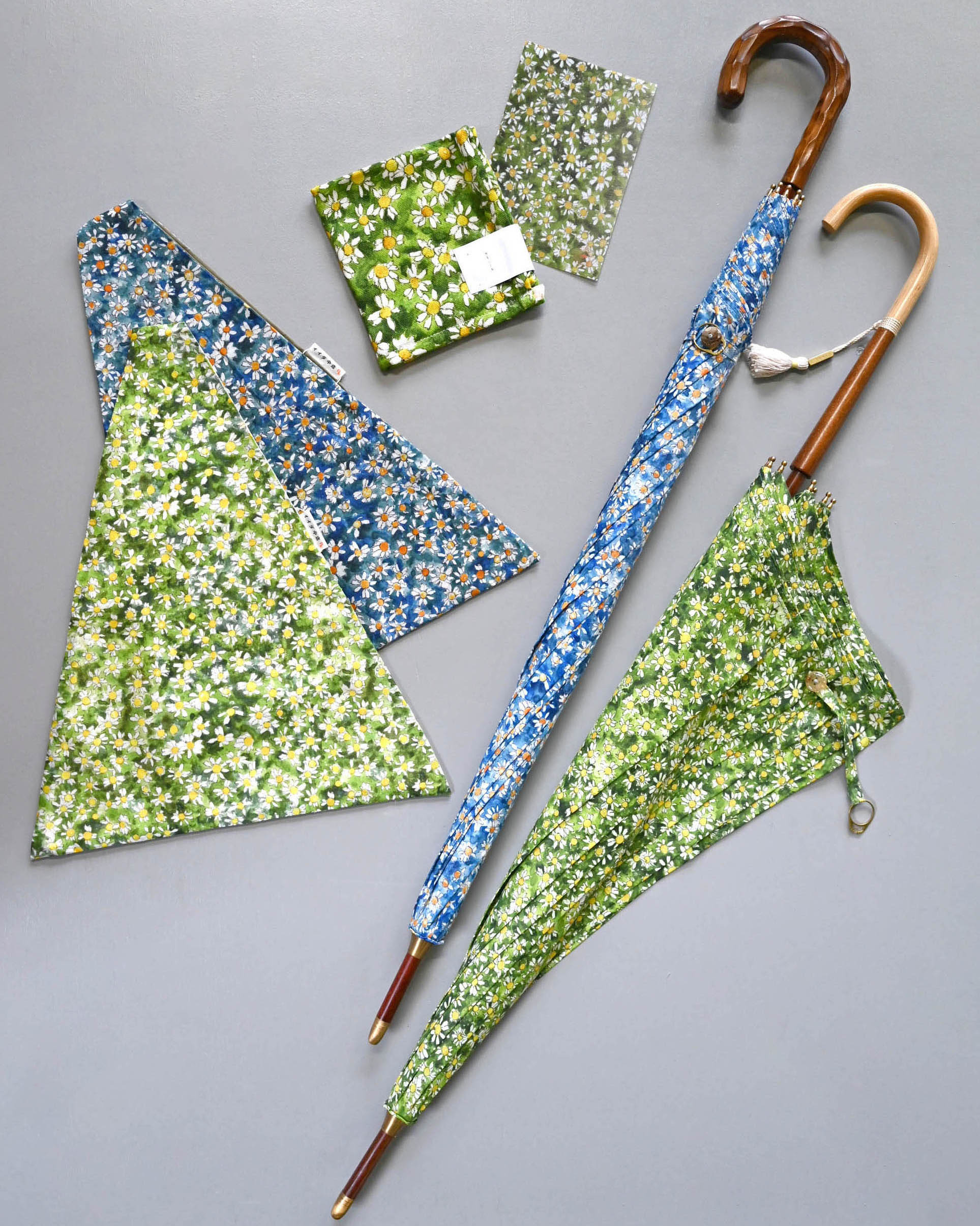 今回は傘はぶどうのたね服飾、小物たちは坂の下ショップで販売予定です。